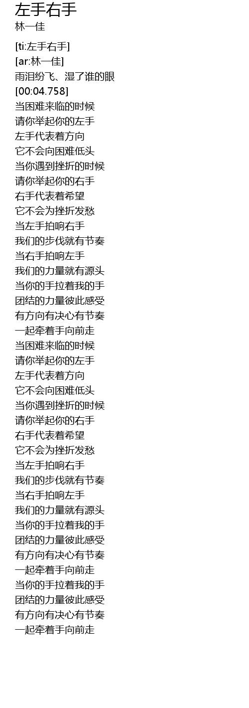 | [00:38.546] | dang zuo shou pai xiang you shou |