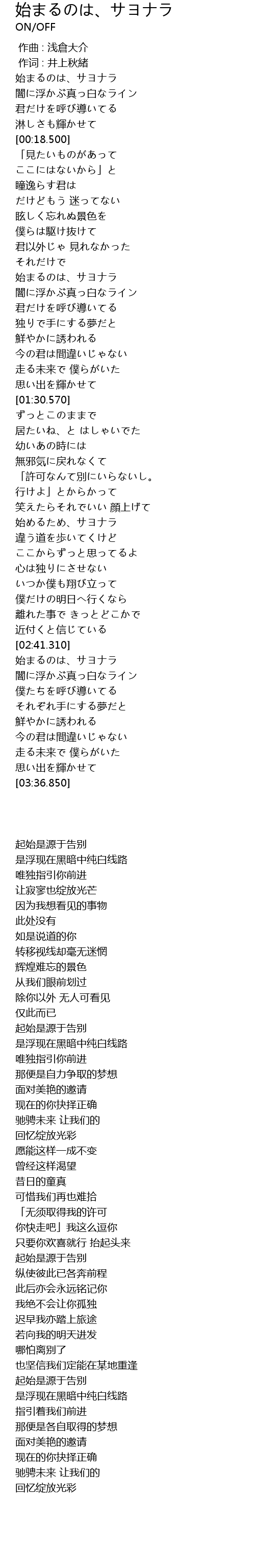 | [03:05.410] | 始まるのは、サヨナラ |