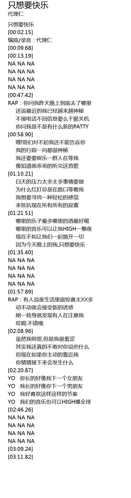 | [00:00.11] | 只想要快乐 |
