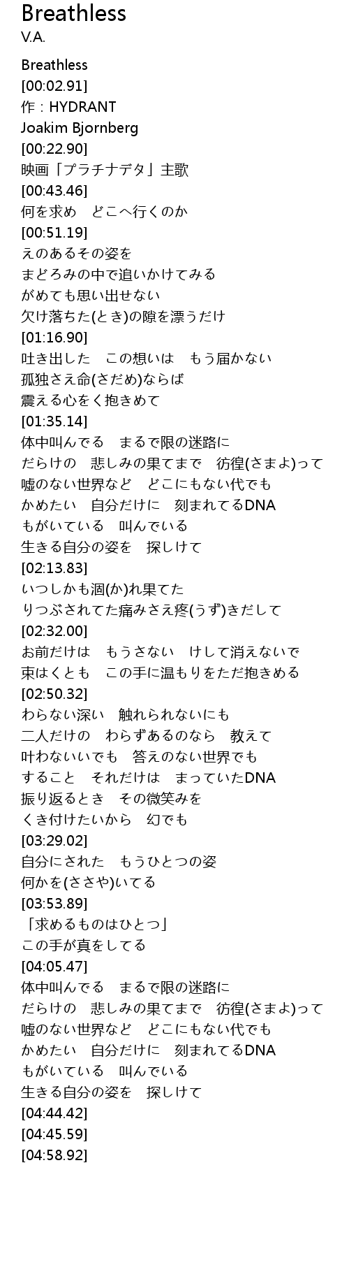 | [00:00.00] | Breathless |