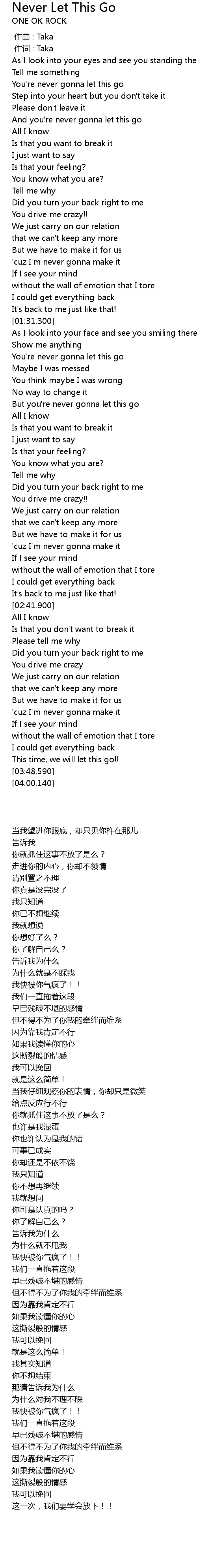 | [03:34.290] | ' cuz I' m never gonna make it |