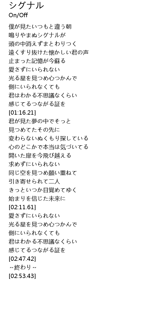 | [00:28.29] | 鳴りやまぬシグナルが |
