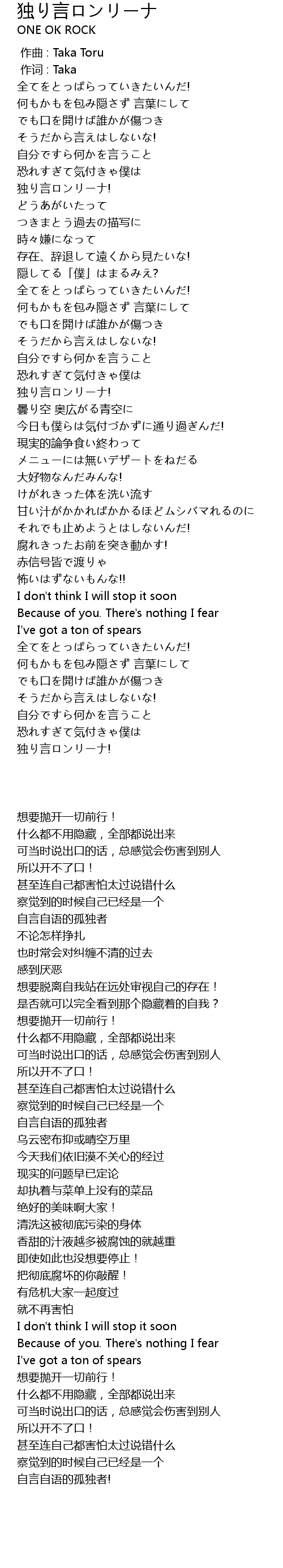 | [00:01.00] | 作词 : Taka |