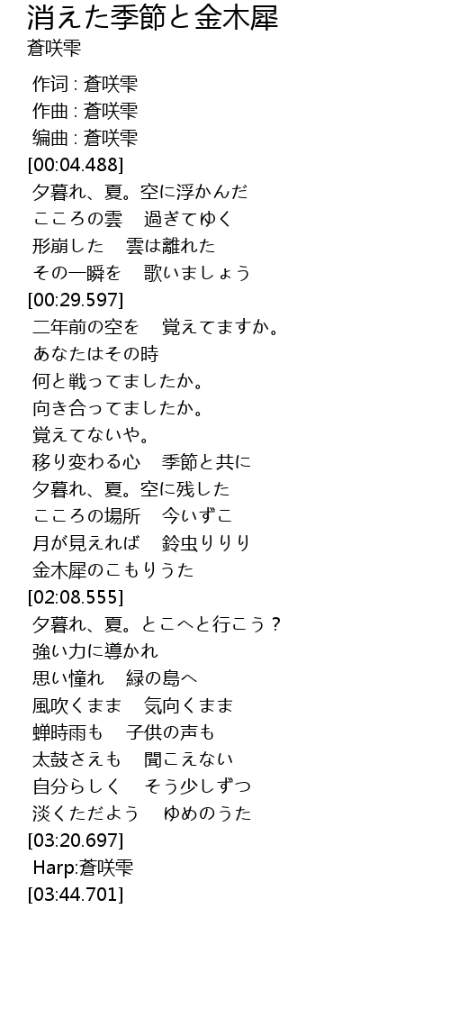 | [03:32.632] | Harp:蒼咲雫 |