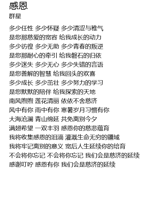 | 不会将你忘记 不会将你忘记 我们会是慈济的延续 | |