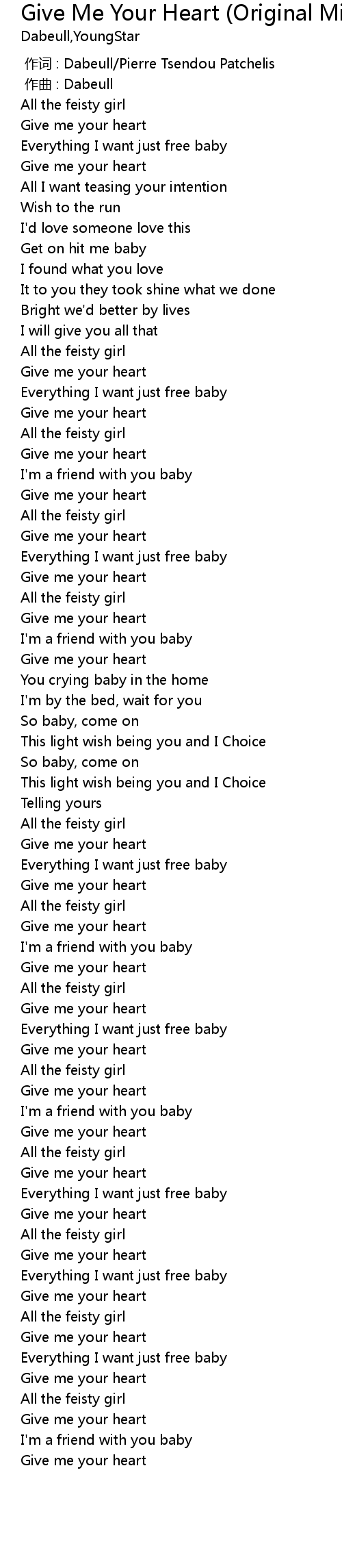 | [02:53.06] | Give me your heart |