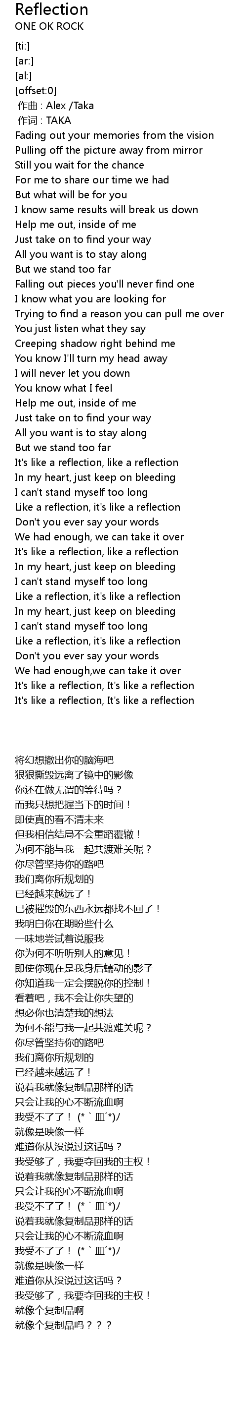 | [01:42.39] | It' s like a reflection, like a reflection |