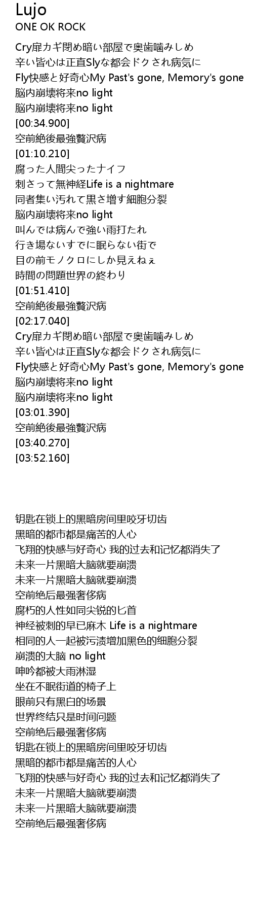 | [02:51.410] | Fly快感と好奇心My Past's gone, Memory's gone |