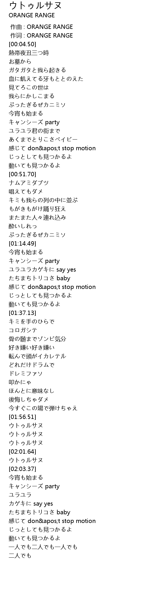 | [00:00.00] | 作曲 : ORANGE RANGE |
