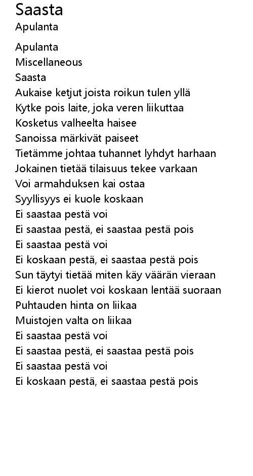 | Ei koskaan pestä, ei saastaa pestä pois | |