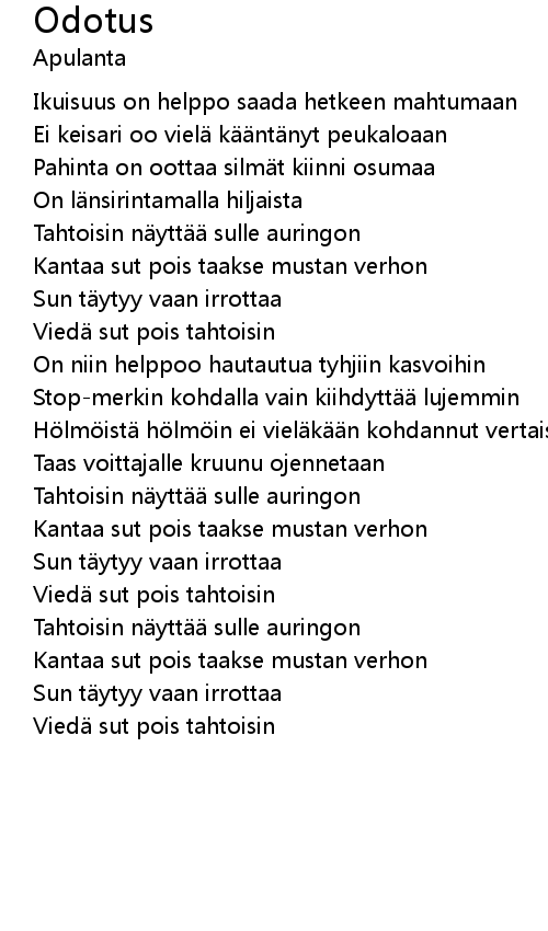 | Song | Odotus |