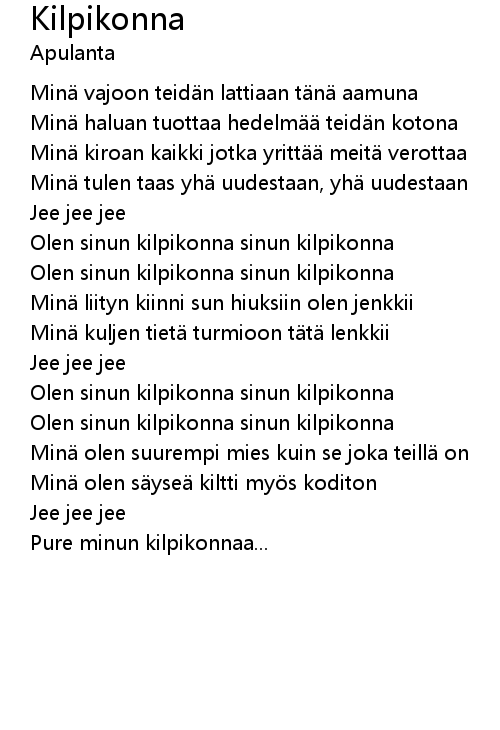 | Minä liityn kiinni sun hiuksiin olen jenkkii | |
