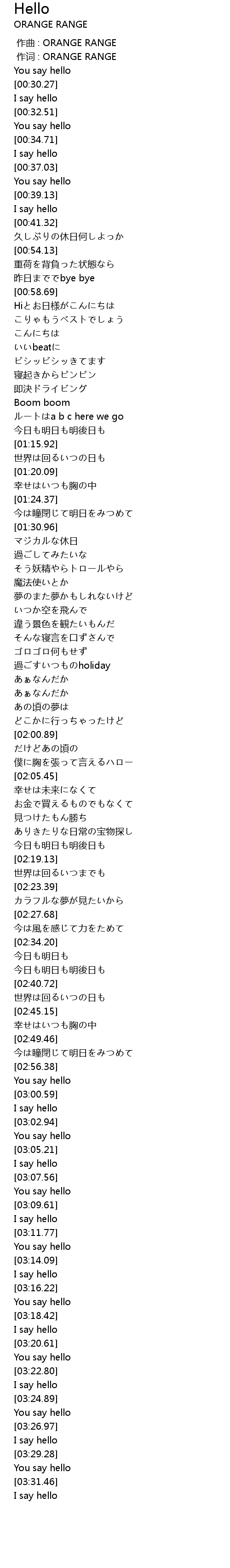 | [00:01.00] | 作词 : ORANGE RANGE |