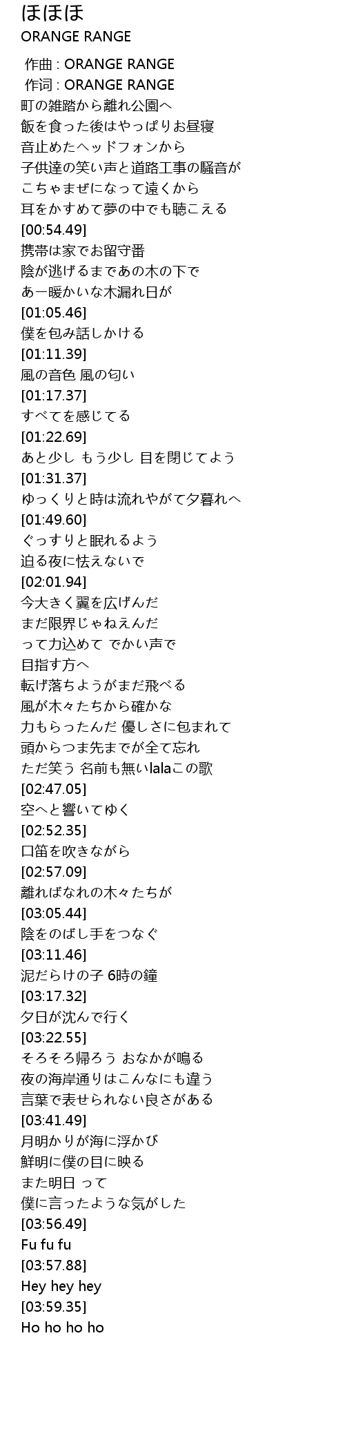 | [00:01.00] | 作词 : ORANGE RANGE |