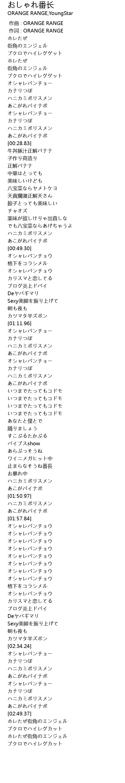 | [00:00.27] | 作词 : ORANGE RANGE |