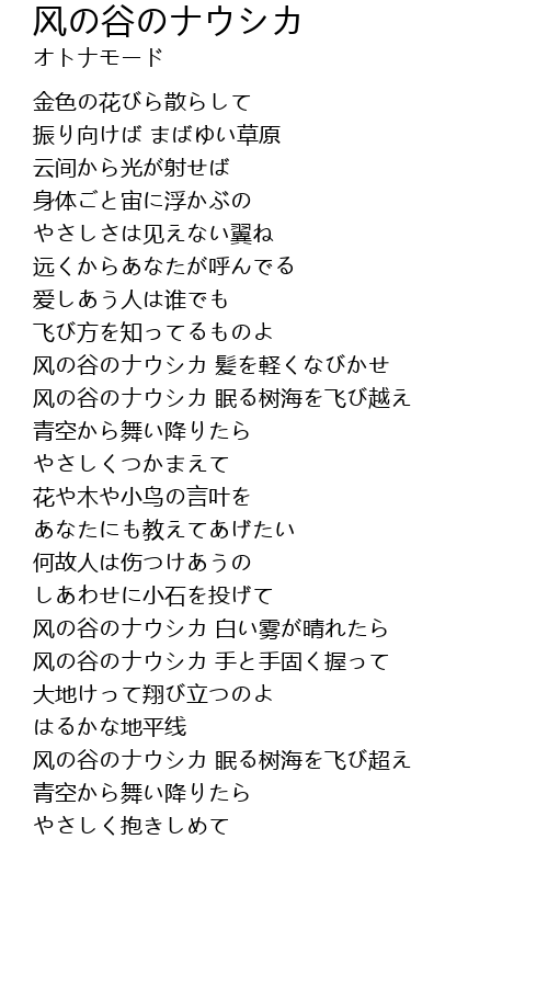 | [01:29.57] | 风の谷のナウシカ 髪を軽くなびかせ |
