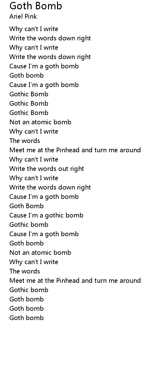 Cause I'm a goth bomb |