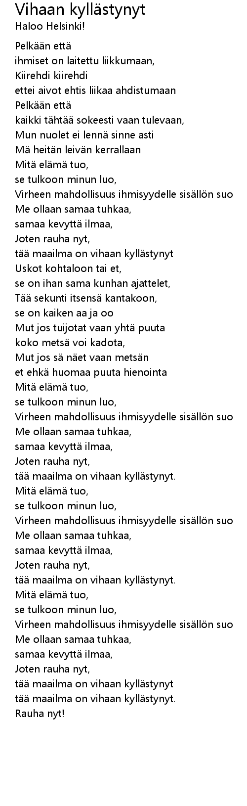 | kaikki t ht sokeesti vaan tulevaan, | |