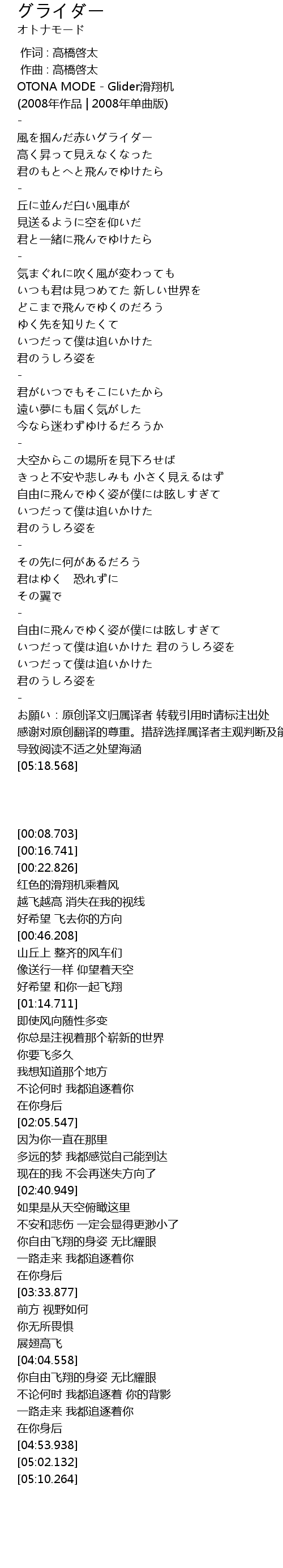 | [00:08.703] | OTONA MODE - Glider滑翔机 |
