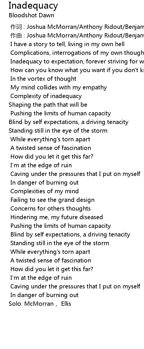 | [00:20.49] | Inadequacy to expectation, forever striving for what? |