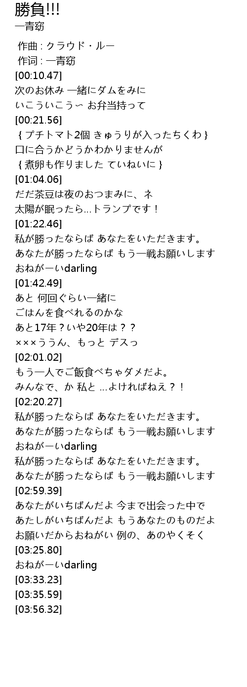 あたしがいちばんだよ もうあなたのものだよ |