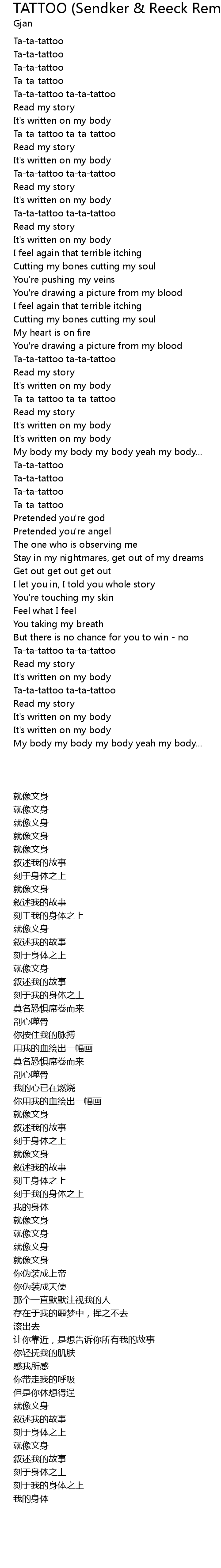 | [00:52.14] | Ta-ta-tattoo ta-ta-tattoo |