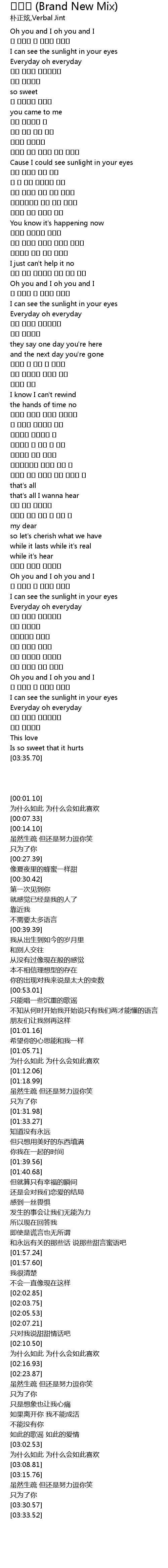 | [00:56.34] | 내가 어느새 둘만의 언어로 말하네 |