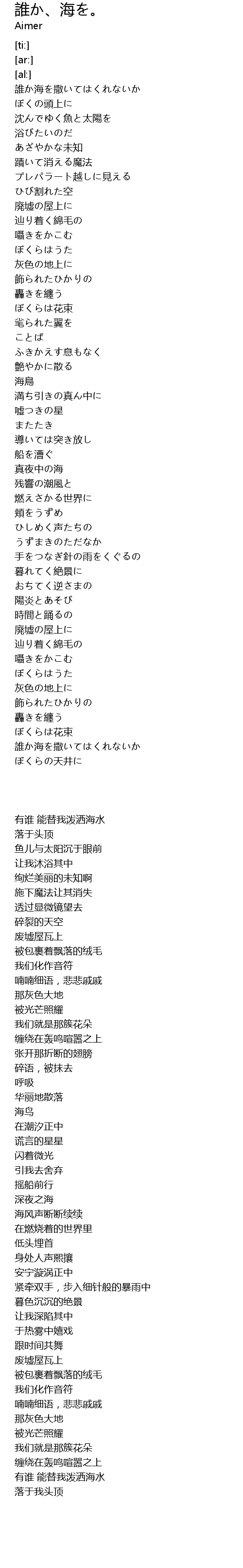 | [00:00.00] | 誰か海を撒いてはくれないか |
