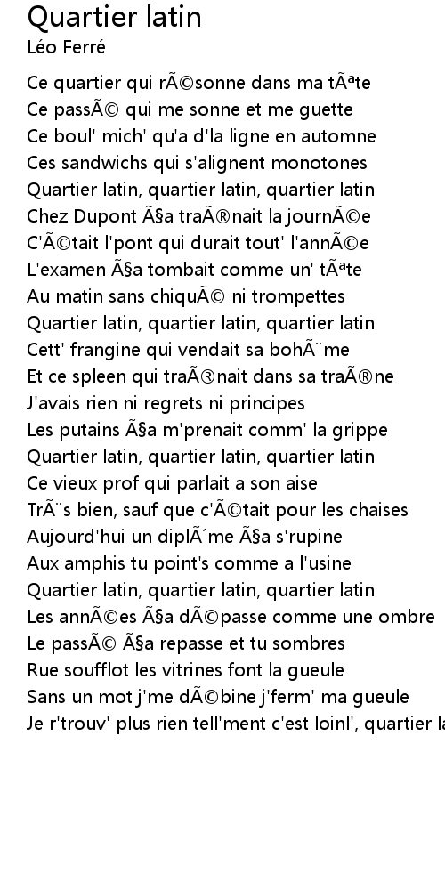 | Je r' trouv' plus rien tell' ment c' est loinl', quartier latin |