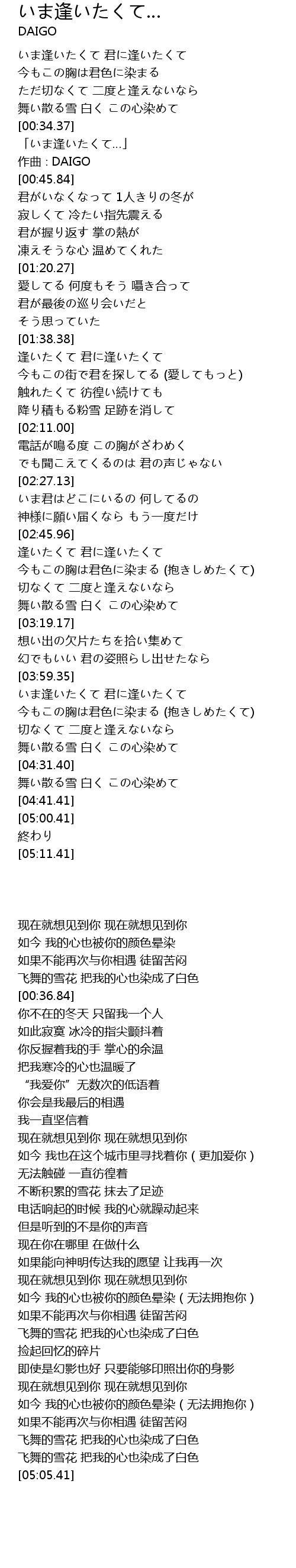 | [04:00.36] | いま逢いたくて 君に逢いたくて |