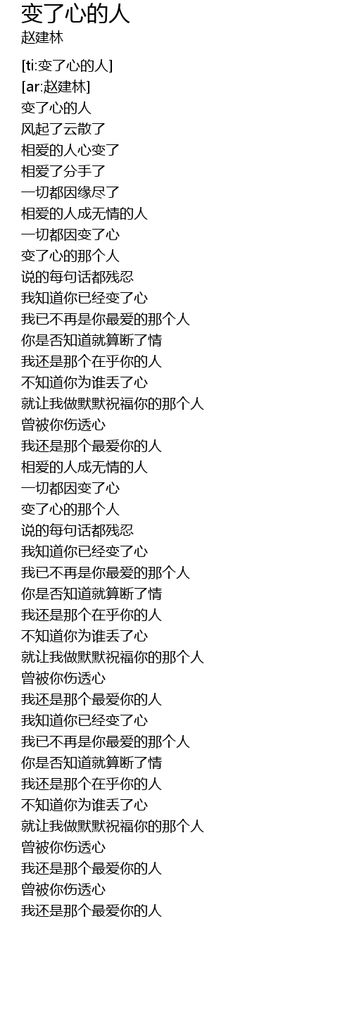 | [00:16.608] | xiāng ài de rén xīn biàn le |