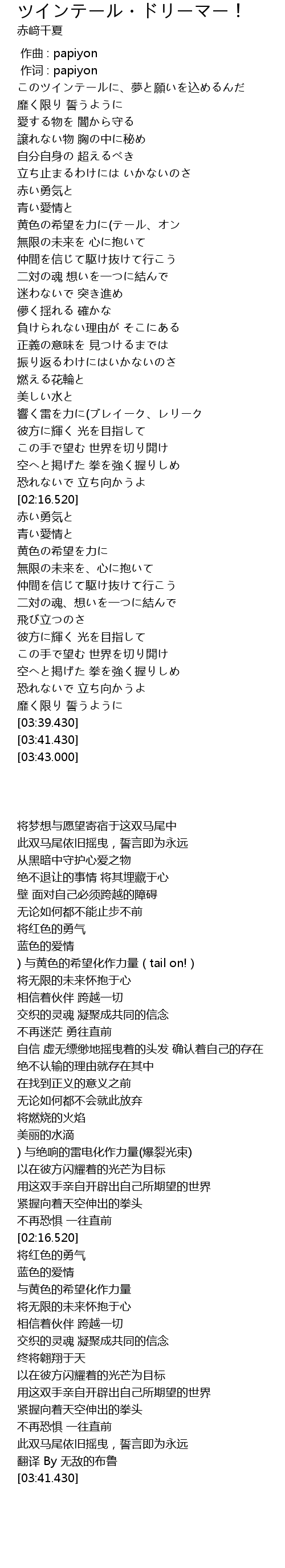 | [00:01.500] | このツインテールに、夢と願いを込めるんだ |