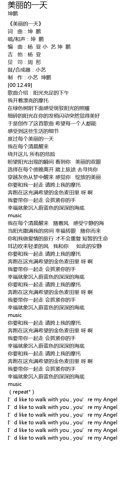| [04:52.27] | I’d like to walk with you , you’re my Angel |