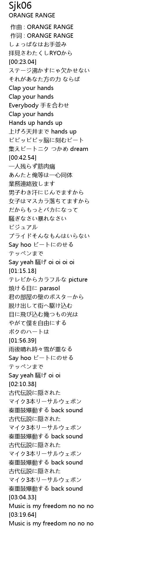 | [00:00.00] | 作曲 : ORANGE RANGE |
