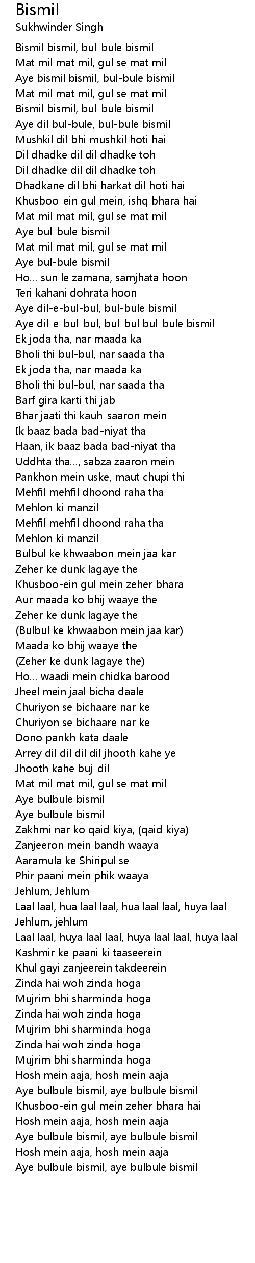 | Aye dil-e-bul-bul, bul-bul bul-bule bismil | |