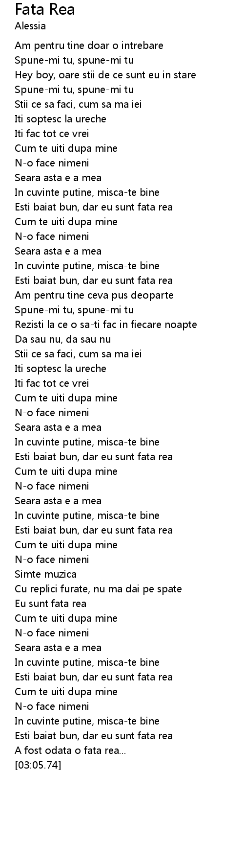 | [02:39.63] | Esti baiat bun, dar eu sunt fata rea |