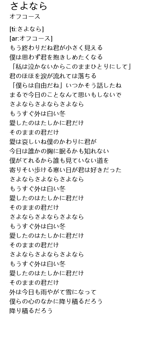| [02:21.246] | 寄りそい歩ける寒い日が君は好きだった |