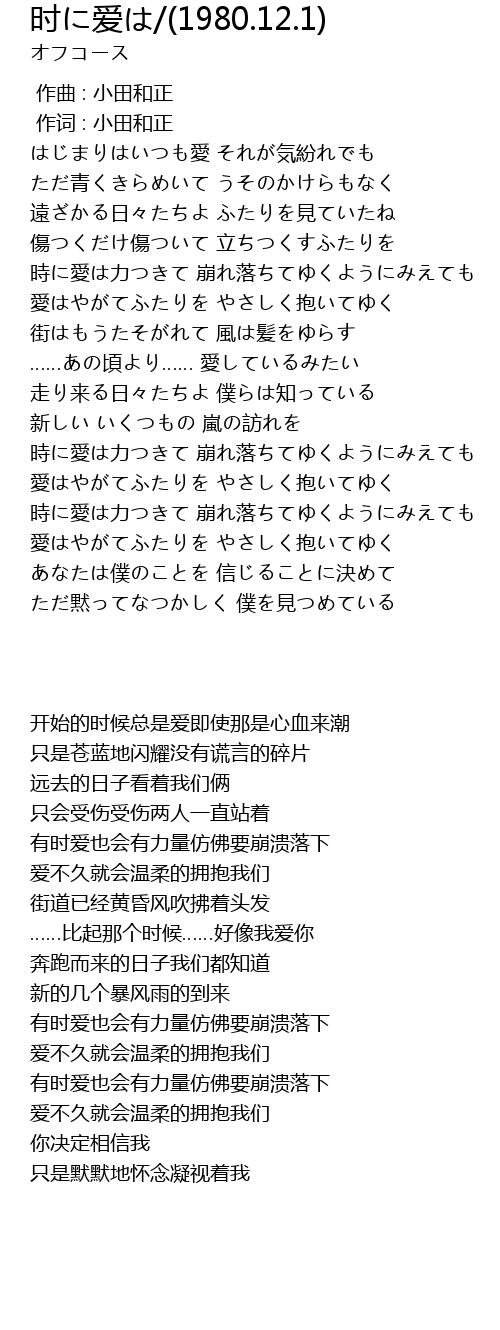 | [03:46.01] | 時に愛は力つきて 崩れ落ちてゆくようにみえても |