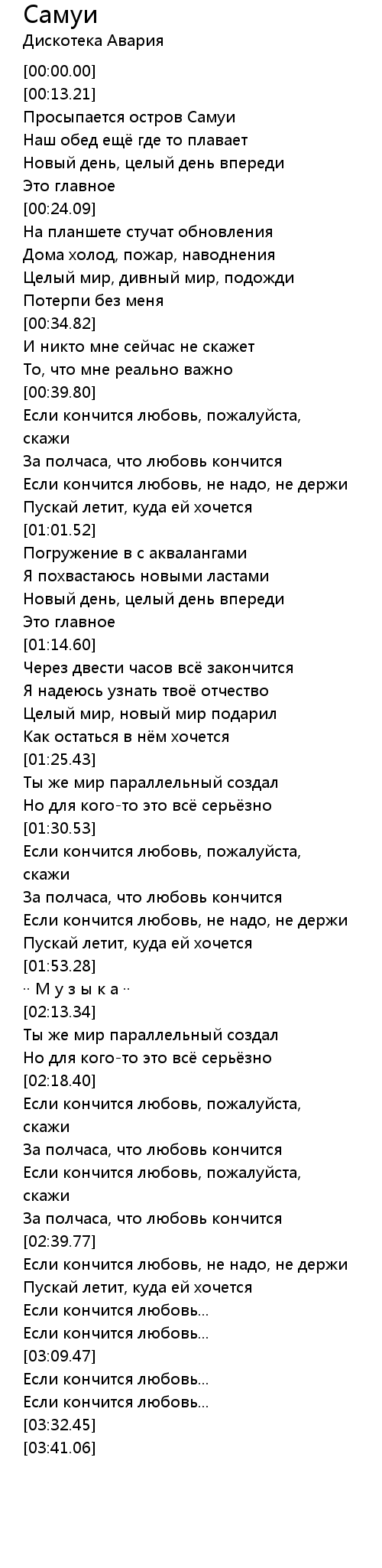[01:36.47] За полчаса, что любовь кончится