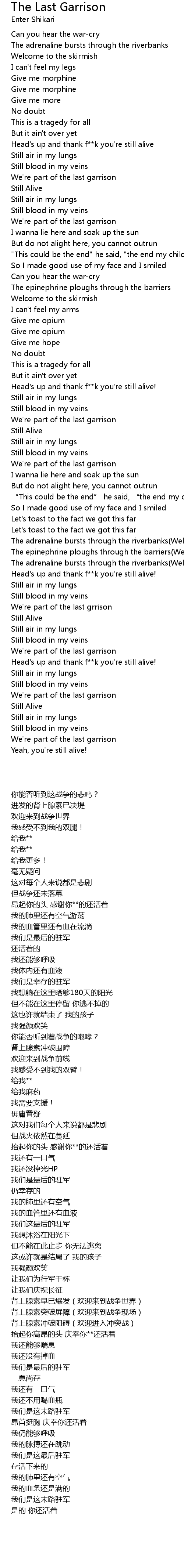 | [00:30.47] | Head's up and thank f**k you're still alive |