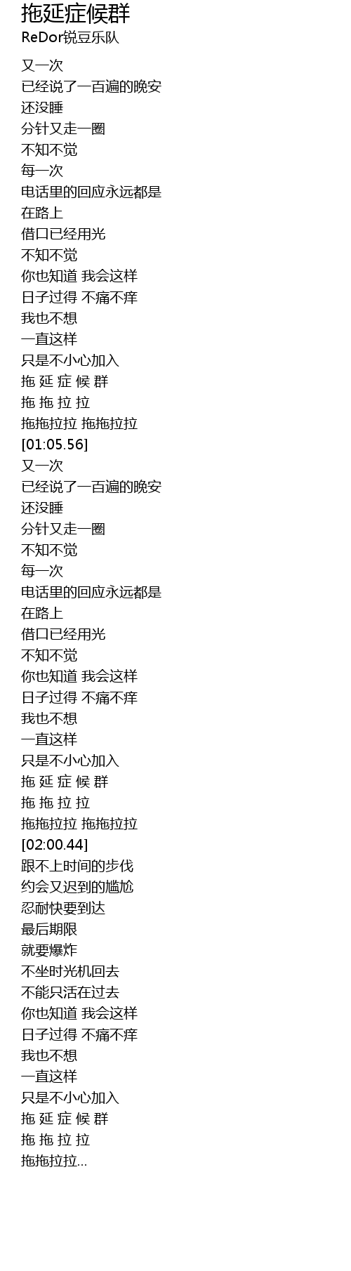 | [01:55.05] | 拖拖拉拉 拖拖拉拉 |