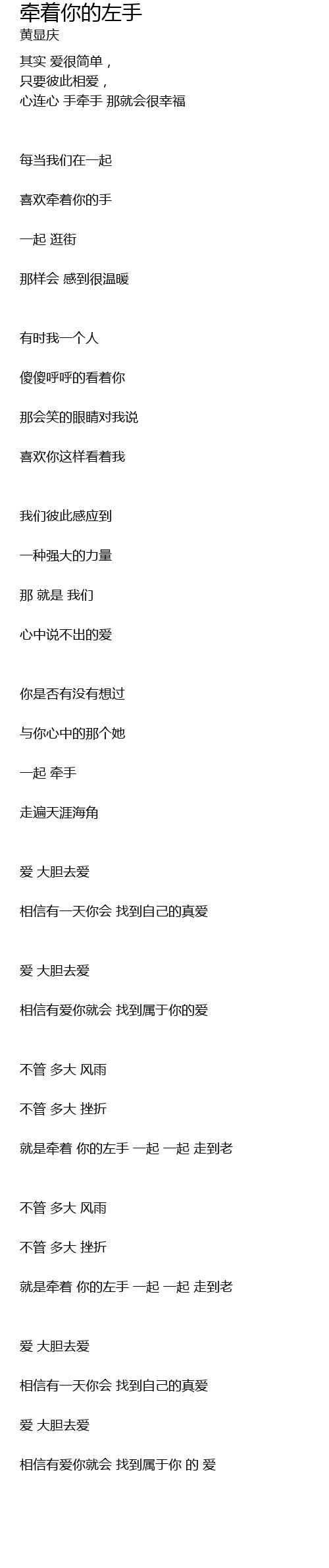 | 就是牵着 你的左手 一起 一起 走到老 | |