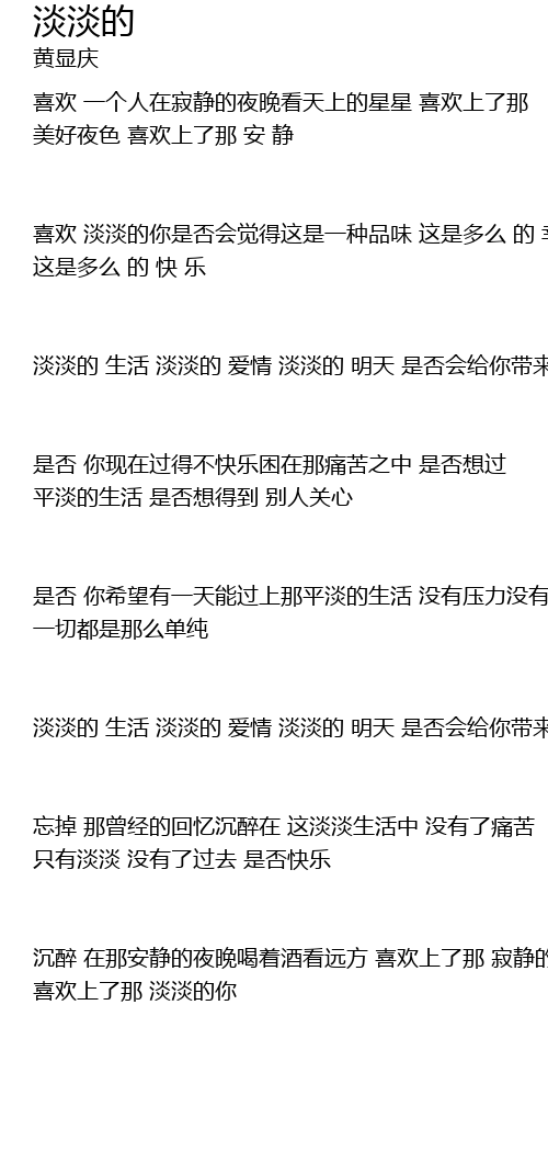 | 忘掉 那曾经的回忆沉醉在 这淡淡生活中 没有了痛苦 只有淡淡 没有了过去 是否快乐 | |