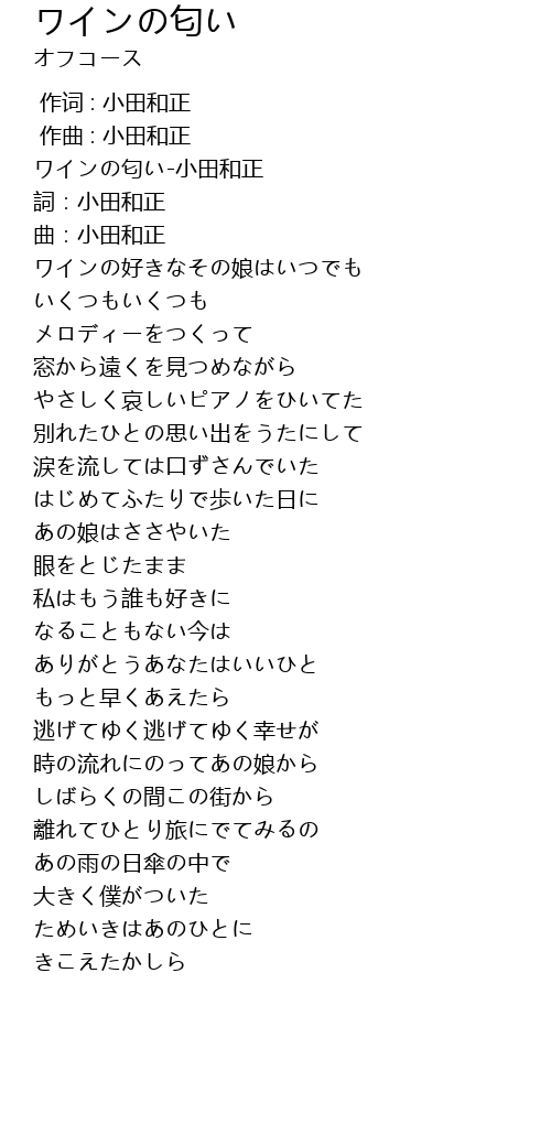 | [00:01.360] | ワインの匂い-小田和正 |