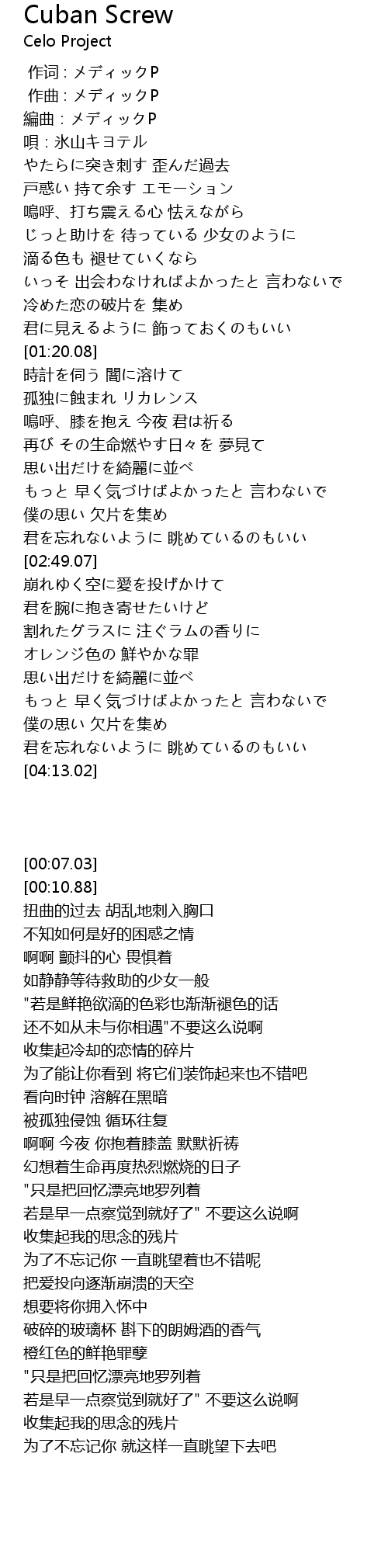 | [00:07.03] | 編曲:メディックP |