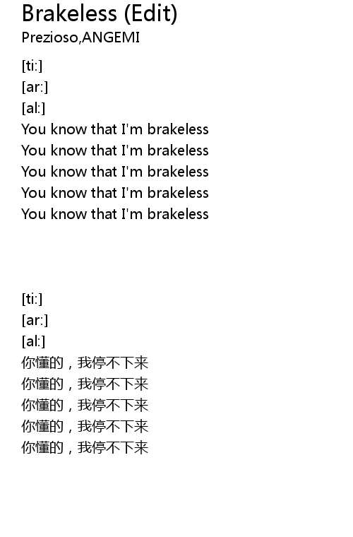 Brakeless (Edit) Lyrics