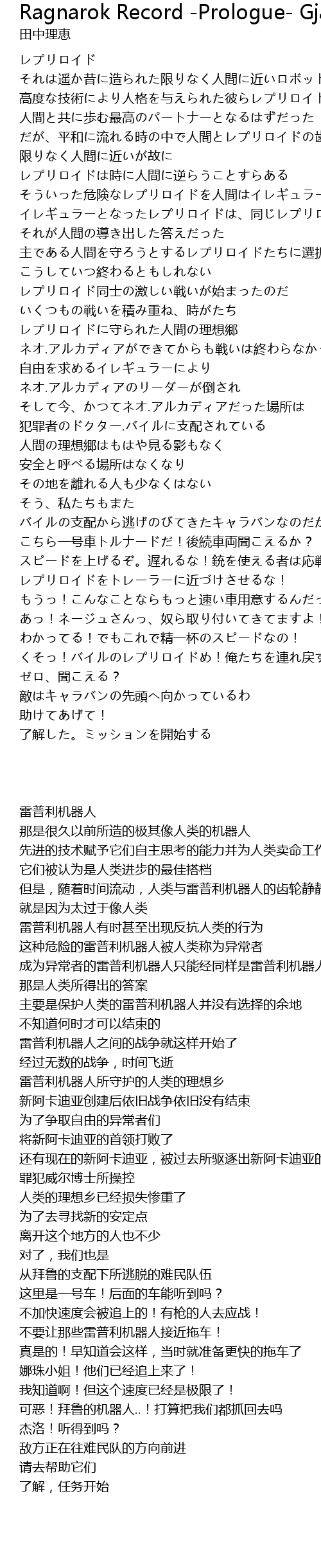 | [00:09.00] | 高度な技術により人格を与えられた彼らレプリロイドは人間のために働き |