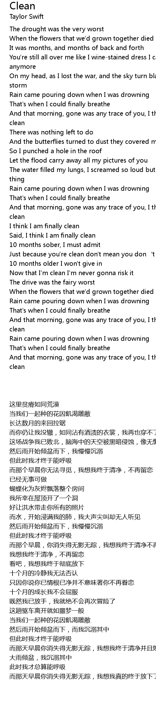 | [03:57.800] | And that morning, gone was any trace of you, I think I am finally clean |