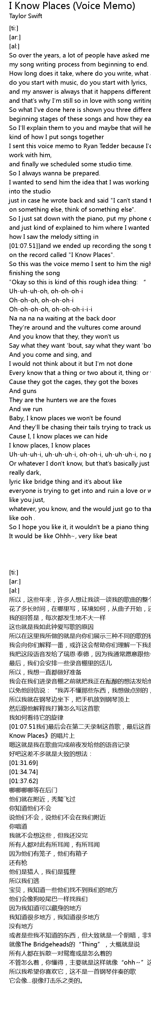 | [01:07.51]] | and we ended up recording the song the next day and it ended up being on the record called "I Know Places". |
