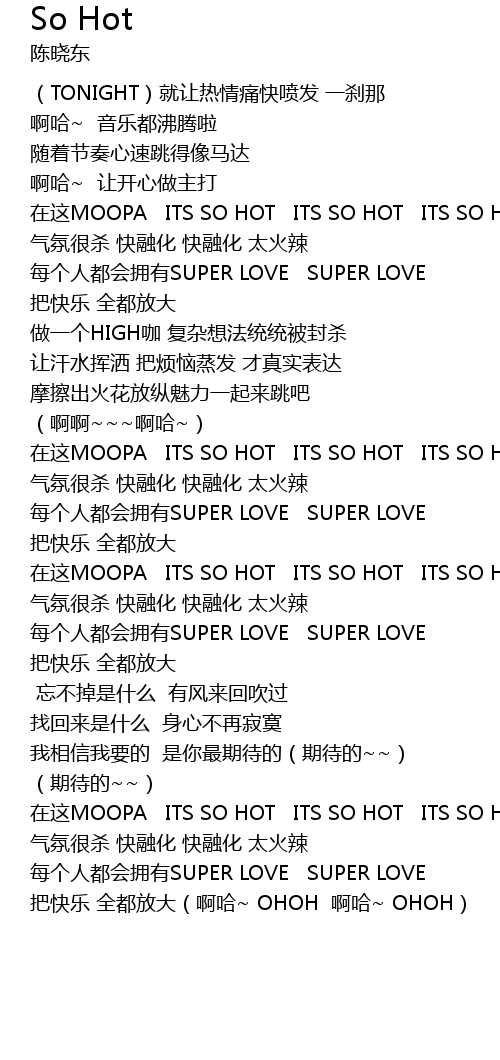 | [01:42.13] | zài zhè MOOPA ITS SO HOT ITS SO HOT ITS SO HOT |